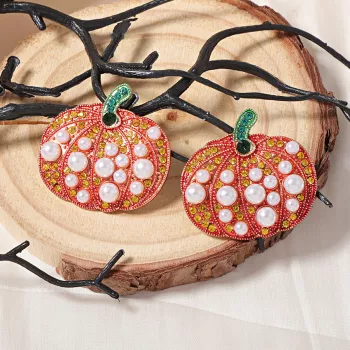 Pearl Alloy Halloween Pumpkin Earrings – Creative Festive Jewelry